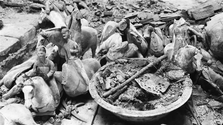 甬道及墓室內(nèi)隨葬品眾多,有彩繪陶、漆木、石、銅、鐵、金銀器及革制和絲麻織品等,共計220余件組。從發(fā)掘現(xiàn)場來看,這座墓葬保存非常完整,沒有被盜和攪擾的痕跡。
