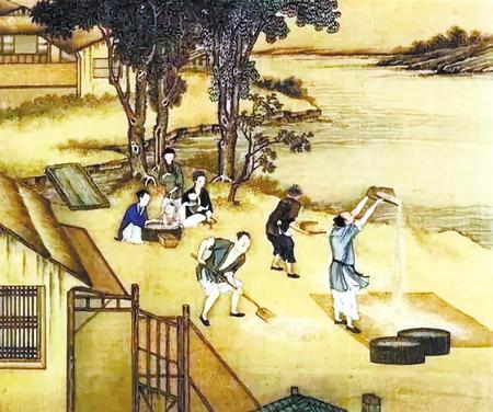 這一時期,隴右河西在播種方式上,除推廣先進的耬播技術外,還使用傳統(tǒng)的點播等方法。嘉峪關魏晉墓壁畫反映的點播有兩種:一種是在未翻耕的土地上破土點種。另一種是先將土壤翻起,隨犁溝溜播種子,然后用耱地法蓋種。按《齊民要術》的記載“空曳耢(耱)”主要是在播種已發(fā)芽的種子時使用。據此則可以推斷,魏晉時河西地區(qū)的勞動人民已經掌握用水浸種催芽的技術和相應的播種方法。