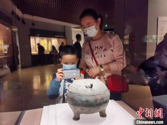 2月17日,甘肅省博物館迎來春節(jié)7天假期中的最后一波游客。圖為當(dāng)?shù)孛癖娫谡箯d參觀?!堟骸z