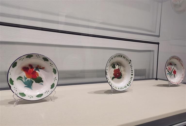 本次展出的156件展品均為蘭州搪瓷廠藝術(shù)底稿和實(shí)物,目前由甘肅三木自行車博物館收藏,其中搪瓷手繪設(shè)計(jì)圖稿65幅,搪瓷器皿91件。展出手繪設(shè)計(jì)圖稿均為蘭州搪瓷廠王村等人設(shè)計(jì)繪圖,分為湯盆、面盆、菜盤、茶盤4大類:圖案內(nèi)容有花鳥、人物、動(dòng)物、客輪、軍艦,包括經(jīng)典圖案“紅雙喜”“幸福”“美好”等,大小尺寸由26至38厘米之間。器皿類搪瓷有盆類、盤類、缸類、碗類。展覽充分體現(xiàn)了蘭州搪瓷廠設(shè)計(jì)室及工人們?cè)诶^承傳統(tǒng)陶瓷工藝的基礎(chǔ)上有了創(chuàng)新和鮮明的時(shí)代特色。