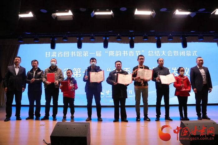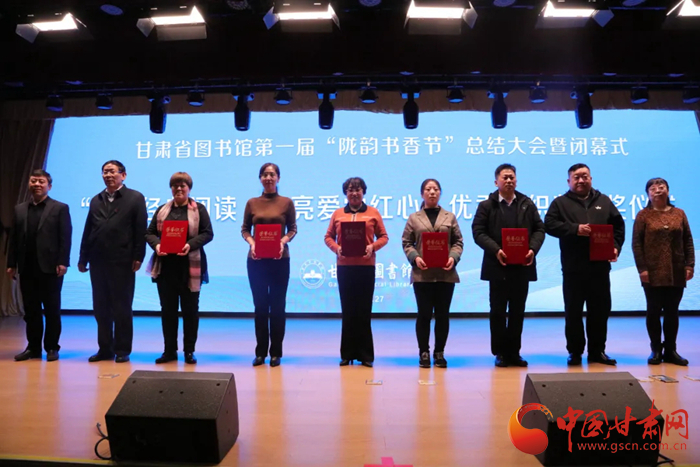 中國甘肅網(wǎng)12月28日訊(本網(wǎng)記者 張?zhí)m琴 通訊員 吳鵬)12月27日,歷時8個月的甘肅省圖書館第一屆隴韻書香節(jié)圓滿落幕。閉幕儀式上播放了第一屆“隴韻書香節(jié)”活動總結(jié)短片和書香家庭宣傳短片,公布了“隴韻書香節(jié)”形象標(biāo)識(LOGO)方案,并為“甘肅省第一屆書香家庭”獲得者、“紅色經(jīng)典閱讀  點亮愛黨紅心”活動獲獎?wù)哳C獎。
