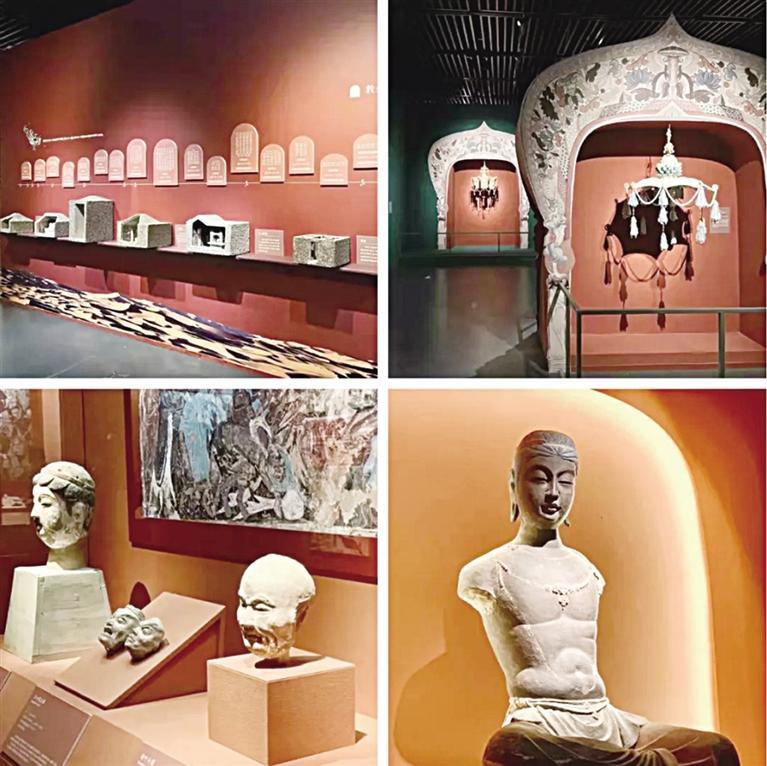 展覽分為“石窟藝術(shù)”“絲路重華”“萬象人間”3個單元,展出文物130多件(套),集中展示了甘肅河西走廊沿線出土的重要絲路文物精華,全面展示了中西文明在敦煌與河西地區(qū)的交融與成就。