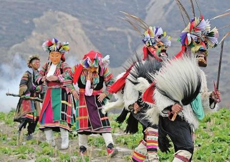 “池哥晝”是居住在文縣鐵樓鄉(xiāng)的白馬人傳承至今的一種民間舞蹈和傳統(tǒng)祭祖活動,為國家級非物質(zhì)文化遺產(chǎn)。“池哥晝”是隴南白馬語的音譯,為山神之意,“晝”表示舞蹈。“池哥晝”因表演時頭戴面具,亦稱“白馬面具舞”。白馬人是古代仇池國白馬氐族后裔,距今有兩千多年歷史。
