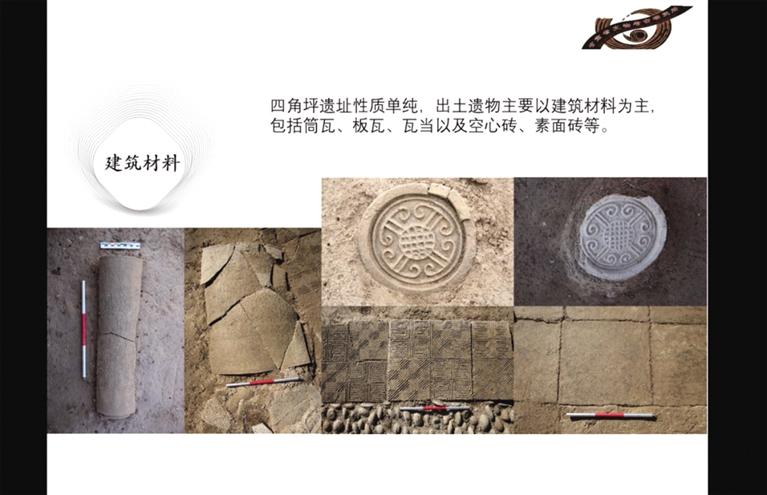 此前勘探發(fā)現(xiàn),四角坪遺址外圍為夯土圍墻,中部為面積約900多平方米的方形夯土臺(tái)基,臺(tái)基頂部四周有回廊式建筑。經(jīng)過(guò)兩年的發(fā)掘,摸清了夯土臺(tái)基的形制,發(fā)現(xiàn)了臺(tái)基中心較特殊的半地穴式建筑,以及臺(tái)基外圍第一排附屬建筑。每組建筑之間有寬約一米的夯土通道連接,建筑周?chē)⒙涓鞣N建筑構(gòu)件,如板瓦、筒瓦、瓦當(dāng)、空心磚等。通過(guò)考古發(fā)掘顯示,四角坪遺址建筑體量巨大,等級(jí)分明,格局規(guī)整對(duì)稱(chēng),是秦帝國(guó)時(shí)期代表國(guó)家意志的禮制性建筑群。
