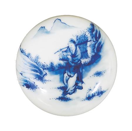 樵夫讀書(shū)青花印泥盒