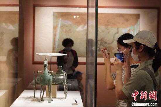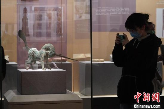 5月18日,游客來到位于蘭州的甘肅省博物館內(nèi)參觀《大道攸歸:五涼文化展》。圖為“銅獨(dú)角獸”。 九美旦增 攝