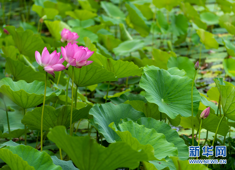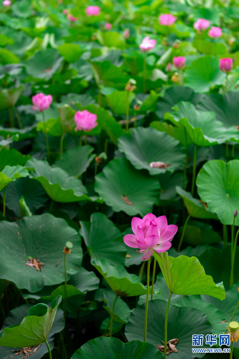 盛夏時節(jié),甘肅省隴南市成縣裴公湖里的荷花競相綻放,在炎炎夏日中帶來一絲清涼。新華網發(fā)(陳爭強 攝)