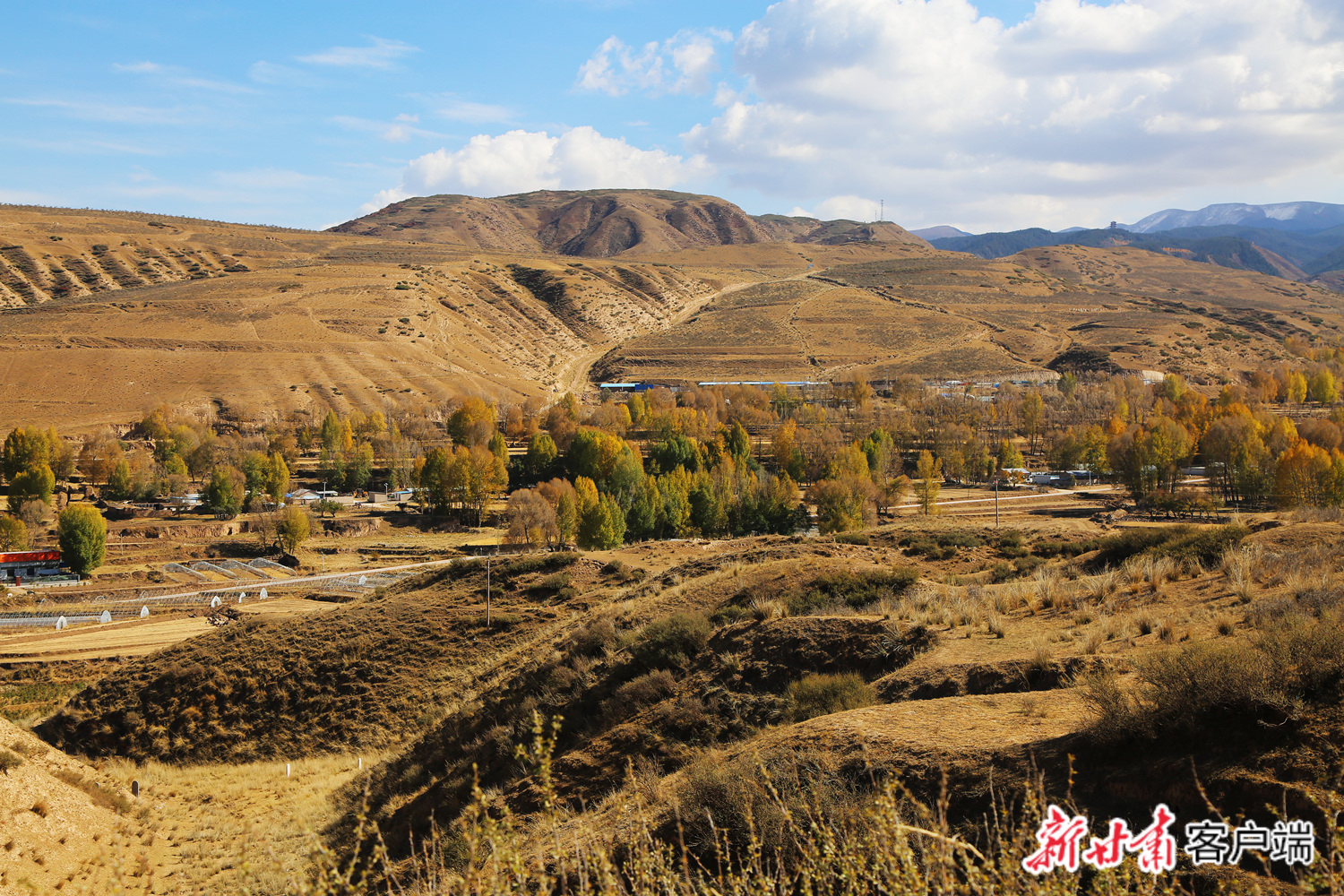 深秋時節(jié),位于焉支山下的山丹縣大馬營鎮(zhèn)中河村色彩斑斕,景色如畫。