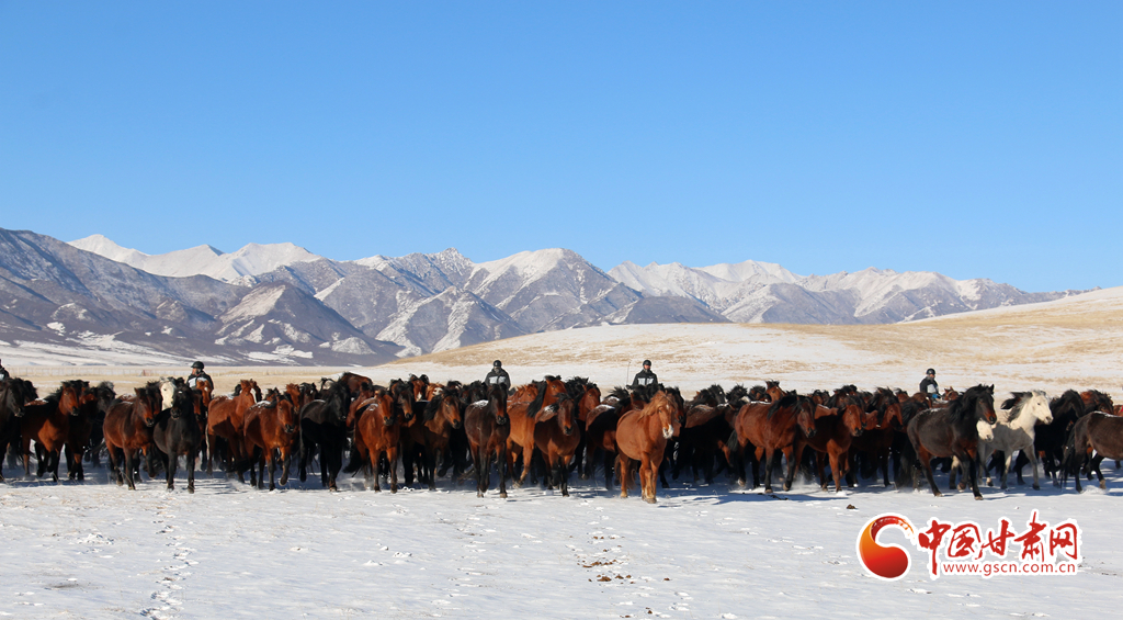2月9日,在甘肅山丹馬場,上演了萬馬奔騰的壯觀景象,健壯的馬蹄濺起陣陣飛雪,實(shí)屬震撼。