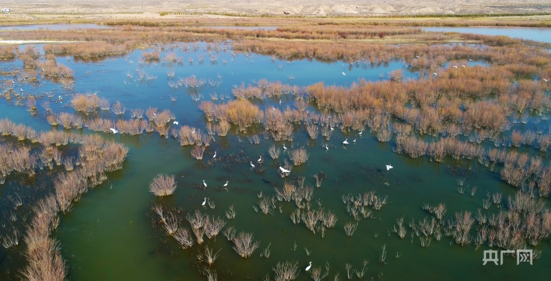 陽(yáng)春三月,位于甘肅省武威市民勤縣、地處石羊河下游的亞洲最大沙漠水庫(kù)——紅崖山水庫(kù),迎來(lái)大批白琵鷺、灰鶴、鳳頭鸊鷉、蒼鷺、大雁等候鳥(niǎo)游弋覓食、追逐嬉戲、展翅翱翔。