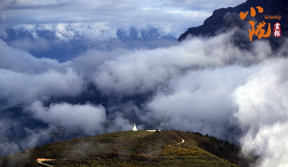 圣潔白塔在云霧中堅(jiān)立,仿佛處于仙界。山腳下,是原生態(tài)的藏寨,淳樸和善的村民日出而作,日入而息……