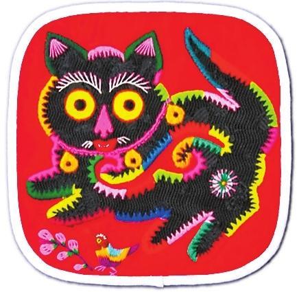 華池民間布貼畫是一種古老的民間工藝美術(shù),是隴東文化的重要組成部分。華池拼布創(chuàng)作以粗布為原料,色彩豐富鮮艷,剪貼的邊線明朗整潔,富有木刻版畫的刀木特點。其內(nèi)容多取材于人物、動物、花鳥等題材,注重色彩對比,以大紅大紫的色彩,夸張化的描述,追求強烈的直觀效果,講究裝飾性;風格浪漫稚拙,渾厚質(zhì)樸,氣韻生動。