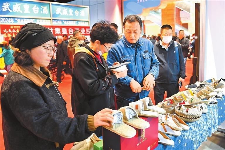 “沒想到一雙布鞋品質(zhì)能這么好,既能保留民族元素,又能兼顧時尚和實用,價格還不貴。”來自西安的游客劉雅楠拿起精致的麻鞋,摸了摸材質(zhì),仔細看了看上面的圖案說。聽到游客的詢問,工作人員笑盈盈地說:“這種鞋子是我們天水甘谷的非遺產(chǎn)品,每一雙鞋都是純手工制造,上面的圖案也是人工刺繡,每一雙都能體現(xiàn)天水藝術和甘谷文化的魅力。”