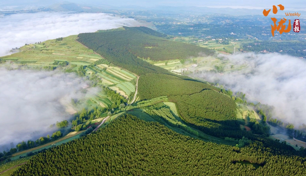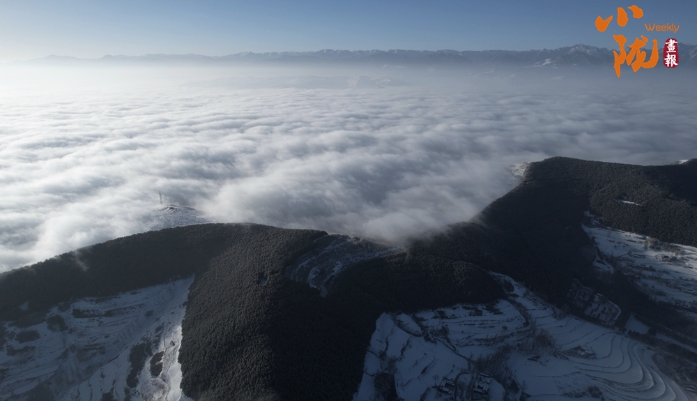 從高處俯瞰,白色的云海在大地上空翻騰涌動(dòng),時(shí)而聚攏,時(shí)而消散,田園、村莊在云霧中時(shí)隱時(shí)現(xiàn),如夢(mèng)如幻。