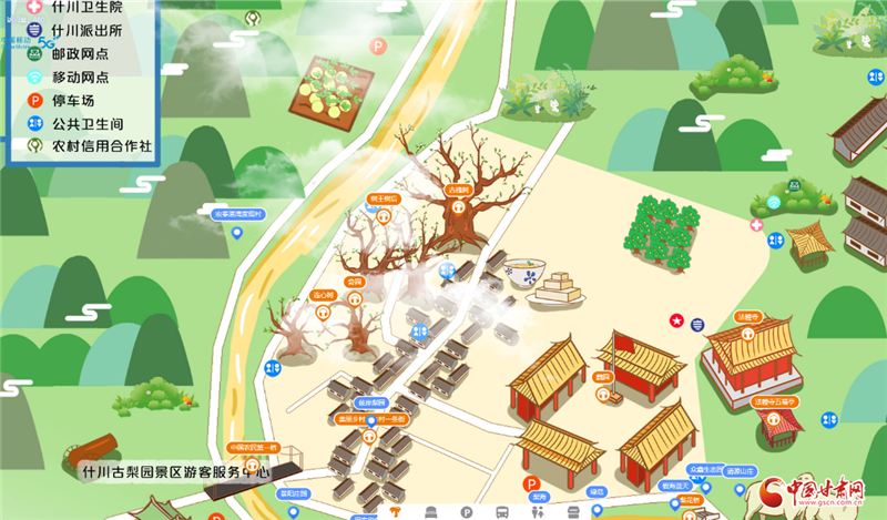 由于百年古梨園位于村落之間,占地面積大且道路蜿蜒曲折,許多外地游客在這里總會(huì)因?yàn)槁窙r不熟或者看不懂紙質(zhì)地圖而走很多冤枉路。針對(duì)游客的這一痛點(diǎn),中國移動(dòng)甘肅公司蘭州分公司依托云網(wǎng)融合和數(shù)字化服務(wù)優(yōu)勢(shì),為什川梨園及周邊景區(qū)量身打造了5G+VR手繪地圖智慧導(dǎo)覽服務(wù),根據(jù)當(dāng)?shù)仫L(fēng)格特色定制手繪地圖,展示當(dāng)?shù)鼐包c(diǎn)及場所地標(biāo)名稱,并可結(jié)合語音講解充分展現(xiàn)歷史背景、文物故事、人物典故等景區(qū)相關(guān)信息,真正讓每一位游客感受到“一部手機(jī)游梨園”的便利。
