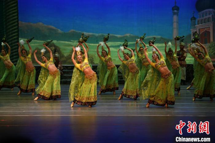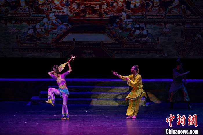 2023年4月17日晚,中國經典舞劇《絲路花雨》在澳門百老匯劇場演出。(資料圖)甘肅演藝集團供圖