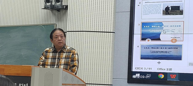 馮玉雷一直認(rèn)認(rèn)真真,埋頭干事。他心中有一個(gè)非常宏大的目標(biāo),向著這個(gè)目標(biāo)行進(jìn)過(guò)程中,腳踏實(shí)地。前幾年他在西北師范大學(xué)首開(kāi)公選課《中國(guó)玉文化》,把玉文化作為專(zhuān)門(mén)的一門(mén)課來(lái)講,具有開(kāi)拓性。玉文化作為一門(mén)學(xué)科,在全國(guó)各大高校此前還沒(méi)有先例,馮玉雷先生做了一件非常有意義的事情。這次講座對(duì)我非常有啟發(fā)。從這門(mén)課的內(nèi)涵來(lái)講,其實(shí)又是一個(gè)延續(xù):對(duì)傳統(tǒng)文化也好,考古文化也好,對(duì)甘肅省乃至整個(gè)中華大地,從玉文化開(kāi)始出現(xiàn),發(fā)展到現(xiàn)在,就是一種延續(xù)。玉和玉器至堅(jiān)至柔,至圣至潔,卻默默無(wú)言,但是它們告訴了我們很多以前不知道或者沒(méi)有意識(shí)到的信息,從重見(jiàn)天光的那一刻起,有無(wú)數(shù)信息在源源不斷的釋放,就看人們?nèi)绾卫斫猓绾谓庾x。如果不研究、發(fā)現(xiàn)這些玉器的內(nèi)涵,那還是相當(dāng)于某種意義上的沉睡。馮玉雷創(chuàng)作小說(shuō),研究玉文化,還組織十幾次考察活動(dòng),國(guó)內(nèi)的有些大家都參與,這像不像流動(dòng)的學(xué)術(shù)討論會(huì)?他的長(zhǎng)篇小說(shuō)《禹王書(shū)》出版剛剛一個(gè)月,據(jù)我所知,“玉文化、神話(huà)小說(shuō)《禹王書(shū)》的學(xué)術(shù)背景”講座是首次分享,他把研究成果、創(chuàng)作成果第一時(shí)間通過(guò)課堂與同學(xué)們分享,我仿佛看到他帶著學(xué)生勇往直前,義無(wú)反顧地向前走著,這本身就是玉文化精神的傳承和發(fā)揚(yáng)!我感覺(jué)到馮玉雷《禹王書(shū)》的思緒上下翻飛,縱橫馳騁,騰躍五千年。小說(shuō)中有非常核心的價(jià)值內(nèi)涵,就是玉文化本身所具有的、深深進(jìn)入到我們民族根脈中的文化內(nèi)涵,同時(shí),又有就是對(duì)文學(xué)的一種激發(fā)。小說(shuō)中的神話(huà)人物以及他們之間的交流、故事、語(yǔ)言,還有那些玉器,都非常神奇??梢灶A(yù)想,這本書(shū)的后延性非常長(zhǎng)遠(yuǎn),希望玉文化班的同學(xué)能夠在馮玉雷老師帶領(lǐng)下,傳承發(fā)揚(yáng)玉文化,完成從璞玉到玉器的轉(zhuǎn)化!