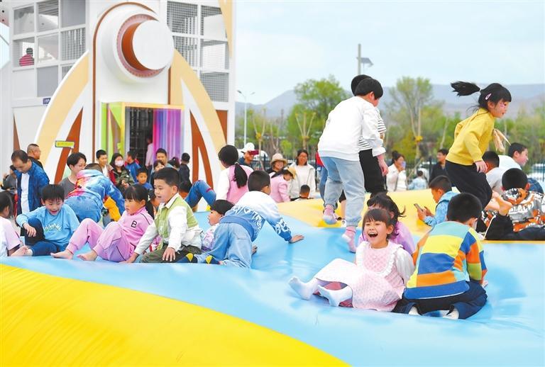 孩子們?cè)阡尤缫鉃秤H子樂(lè)園功能區(qū)快樂(lè)玩耍。新甘肅·甘肅日?qǐng)?bào)記者 馬伊星