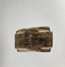 玉琮(編號總0128:2)高4.6~5.2厘米,外方邊長5.5~5.7厘米,內(nèi)徑大端5.4厘米,小端4.2厘米,形制一端較規(guī)整,另一端四角上部不規(guī)整。