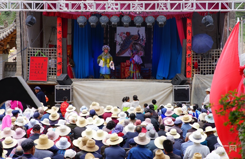 精彩的秦腔演出吸引群眾觀看(央廣網(wǎng)發(fā) 魏國(guó)江 攝)