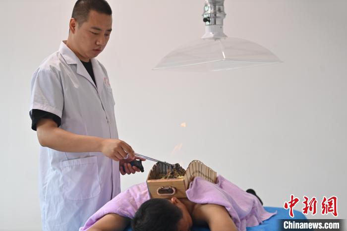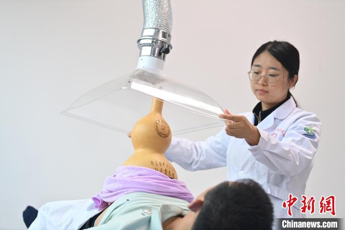 7月16日,甘肅省平?jīng)鍪徐`臺縣皇甫謐針灸康養(yǎng)館內(nèi),工作人員對患者進行葫蘆灸治療。2006年,靈臺皇甫謐針灸術(shù)入選第一批甘肅省非物質(zhì)文化遺產(chǎn)名錄。靈臺作為皇甫謐故里,當?shù)孛癖姺浅UJ可中醫(yī)康養(yǎng),針灸、拔火罐、推拿、葫蘆灸、火龍灸(督脈灸)等中醫(yī)特色療法受到了很多人的青睞,當?shù)毓俜揭餐ㄟ^舉辦大型節(jié)會等助推中醫(yī)康養(yǎng)產(chǎn)業(yè)發(fā)展。 皇甫謐是針灸醫(yī)學鼻祖,其《針灸甲乙經(jīng)》已在多個國家被廣泛傳播應(yīng)用。中新社記者 李亞龍 攝