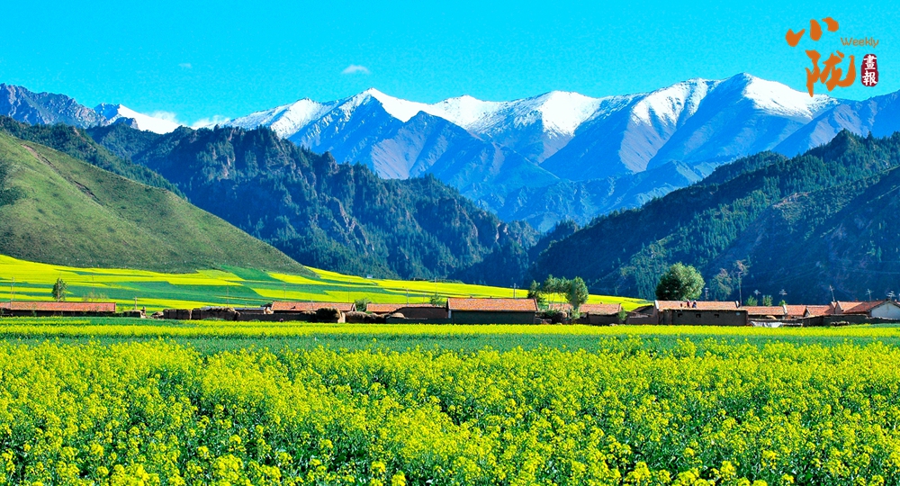 在藍天白云和祁連雪峰的映襯下,那盛開的油菜花、點綴在花海中的村莊人家,勾勒出一幅優(yōu)美的田園風(fēng)光畫卷。