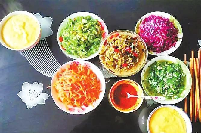 百人百心病,百人百口味?,F(xiàn)在的人吃馓飯,對菜品的要求越來越高了,除了酸菜,人們大多還會調(diào)一些涼菜,或炒一些菜,蘿卜的,肉丁的,山野菜的,虎皮辣子的,滿滿地擺上一桌子,如錦上添花,令人食欲大增。