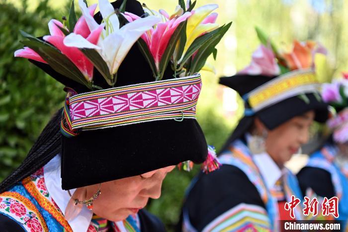 9月26日,甘肅省甘南藏族自治州舟曲縣,當?shù)夭刈鍕D女展示錦帶佩戴方式。錦帶是舟曲藏族婦女用以束腰、扎靴、攏發(fā)乃至點綴服飾的花帶子,艷麗多彩、圖案優(yōu)美。每逢吉慶節(jié)日,藏族婦女穿戴的華麗盛裝就需要少則五、六條,多則十幾條寬窄長短相宜的錦帶來裝飾。據(jù)介紹,藏族織錦帶技藝歷史悠久,一千多年以前,古羌族和吐蕃已有了較發(fā)達的手工編織技術(shù),在艱難的生活條件下對服飾等生活用品除實用功能之外,已經(jīng)有了強烈的審美追求,是研究舟曲羌藏文化的“活化石”。中新社記者 九美旦增 攝