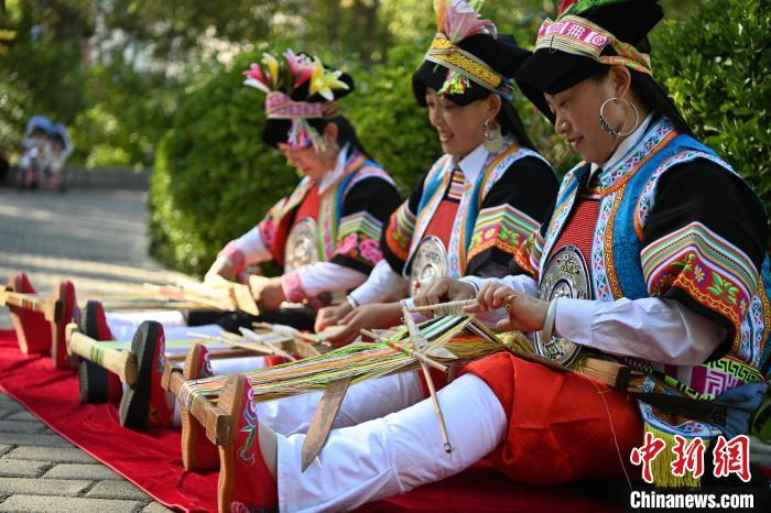 9月26日,甘肅省甘南藏族自治州舟曲縣,當?shù)夭刈鍕D女紡織錦帶吸引游人駐足觀賞。錦帶是舟曲藏族婦女用以束腰、扎靴、攏發(fā)乃至點綴服飾的花帶子,艷麗多彩、圖案優(yōu)美。每逢吉慶節(jié)日,藏族婦女穿戴的華麗盛裝就需要少則五、六條,多則十幾條寬窄長短相宜的錦帶來裝飾。據(jù)介紹,藏族織錦帶技藝歷史悠久,一千多年以前,古羌族和吐蕃已有了較發(fā)達的手工編織技術(shù),在艱難的生活條件下對服飾等生活用品除實用功能之外,已經(jīng)有了強烈的審美追求,是研究舟曲羌藏文化的“活化石”。中新社記者 九美旦增 攝