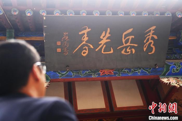 10月23日,甘肅省天水市秦安縣鳳山景區(qū),講解員介紹魯岱下人許行所題隸書“秀岳先春”的匾額。匾額文化是中華民族獨(dú)特的民俗文化,它把辭賦詩(shī)文、書法篆刻、建筑藝術(shù)融為一體。秦安作為歷史文化名城,其不少景區(qū)內(nèi)都存在歷史名人所題珍貴匾額,見證了歷史變遷。中新社記者 李亞龍 攝