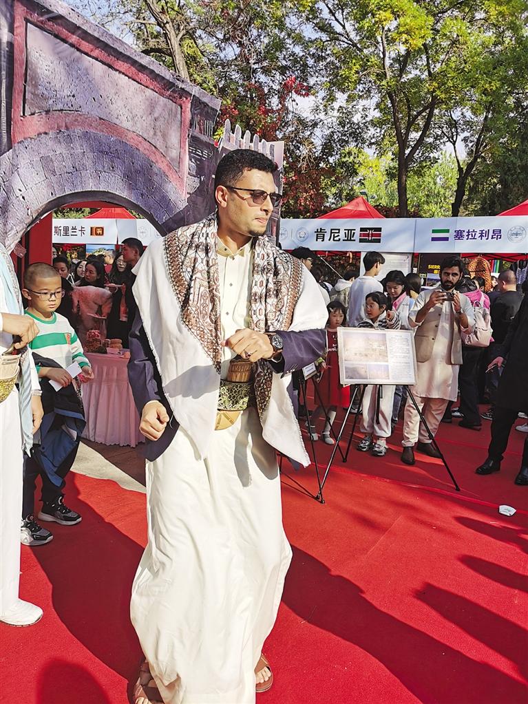 當(dāng)日下午,記者來(lái)到現(xiàn)場(chǎng)看到,中國(guó)、馬達(dá)加斯加、蘇丹、俄羅斯、德國(guó)、也門(mén)、斯里蘭卡、印度……各國(guó)展臺(tái)前人們摩肩擦踵,空氣中彌漫著美食的味道與火熱的激情。身著各國(guó)傳統(tǒng)服飾的人群中,滿(mǎn)目都是俊男靚女,讓人恍若置身國(guó)際大都會(huì)。