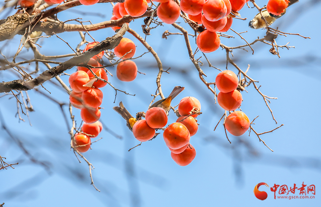 秋去冬來(lái),萬(wàn)物沉寂。在平?jīng)龀缧牛磷訕?shù)上掛滿(mǎn)了果實(shí),又是一年柿子紅。