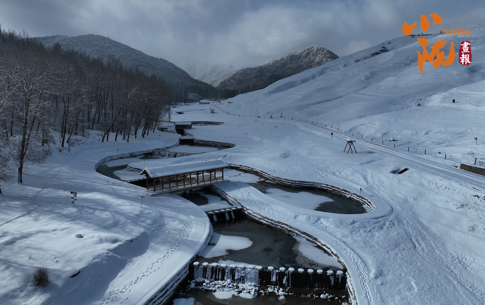 人工湖水面如鏡,與白雪相映成趣,宛如一塊無(wú)瑕的美玉鑲嵌在太子山下。