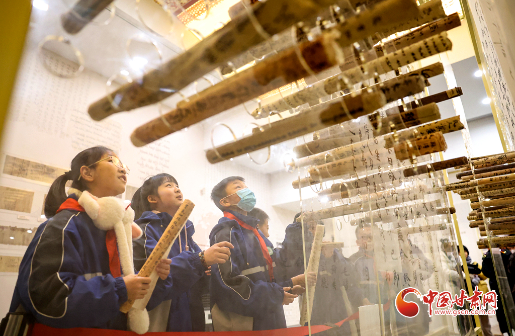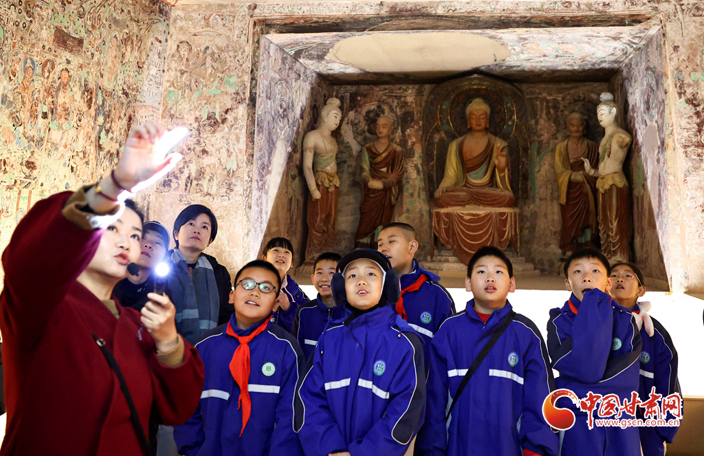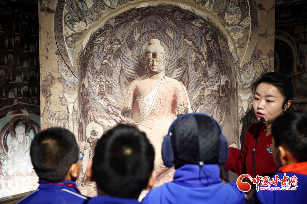 12月29日,蘭州市城關(guān)區(qū)安樂村小學(xué)學(xué)生在家人的陪同下來到敦煌研究院蘭州分院敦煌藝術(shù)館,欣賞“覺色敦煌 莫高精神”敦煌石窟藝術(shù)展,在周末時(shí)光近距離感受敦煌文化藝術(shù)的魅力。