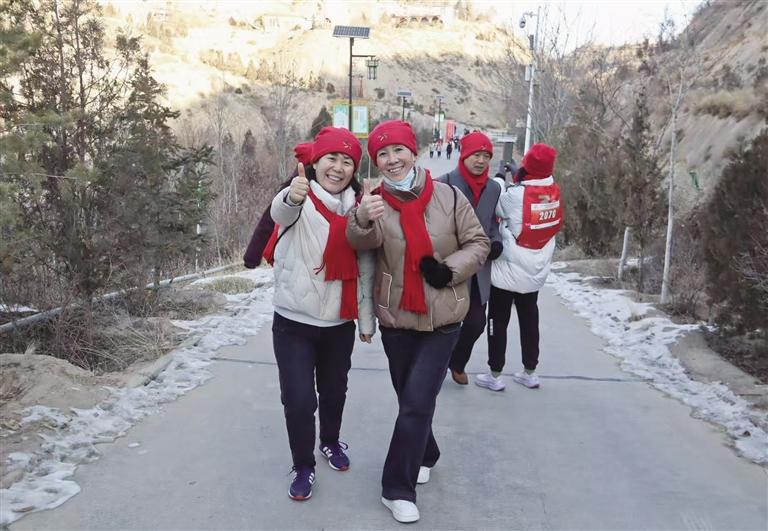 活動(dòng)中,選手們帶著滿滿的祝福,或三五成群、或二人為伴,沿著景區(qū)步道拾級(jí)而上,在樹(shù)蔭環(huán)繞的大自然中呼吸著新年第一天的空氣,感受放飛心情、登高望遠(yuǎn)的愜意。