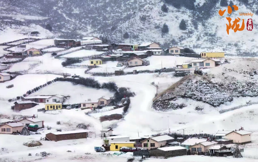 初春的碌曲縣,雪覆蓋了山林,覆蓋了藏寨,山川草場(chǎng)變成了純凈無(wú)暇的世界。