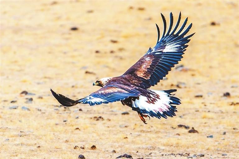 金雕以其卓越的捕獵技巧和優(yōu)雅的飛行姿態(tài)而聞名,主要棲息于高山草原、森林及河谷地帶。在祁連山遼闊的草原之上,金雕展開它那寬闊且有力的雙翅,在藍(lán)天之中肆意翱翔。陽(yáng)光傾灑下來,深褐色的羽毛閃爍著如同金屬般耀眼的光澤,猶如披上了一件堅(jiān)不可摧的鎧甲,威風(fēng)凜凜。它那犀利的眼神,仿佛能夠穿透重重迷霧,洞察這片廣袤土地上的每一個(gè)細(xì)微變化,盡顯王者風(fēng)范。它身姿雄偉而威嚴(yán),宛如一位至高無上的王者,向整個(gè)世界展示著它那不容小覷的力量與威嚴(yán),默默地守護(hù)著這片廣袤無垠的草原天地。