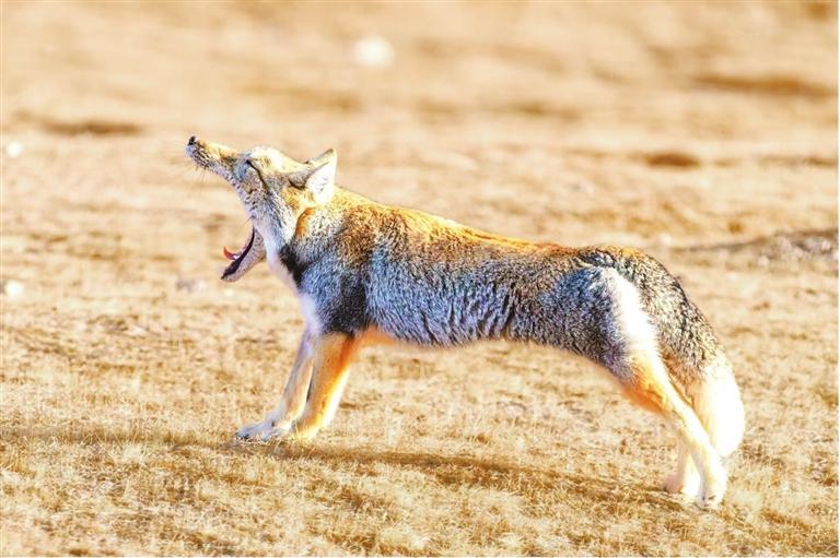攝影師偶遇一只藏狐,它慵懶地從藏身之處緩緩走出,愜意地沐浴在春日的陽(yáng)光中。它站立在草地上,伸直前后腿,將整個(gè)身體舒展成了一條優(yōu)美的弧線,隨后大大地張開嘴巴,打了一個(gè)哈欠,露出那尖銳的牙齒,那模樣既透著幾分呆萌可愛,又帶著些許野性不羈,讓人看了忍俊不禁,為這寧?kù)o的畫面增添了一抹別樣的詼諧與趣味。