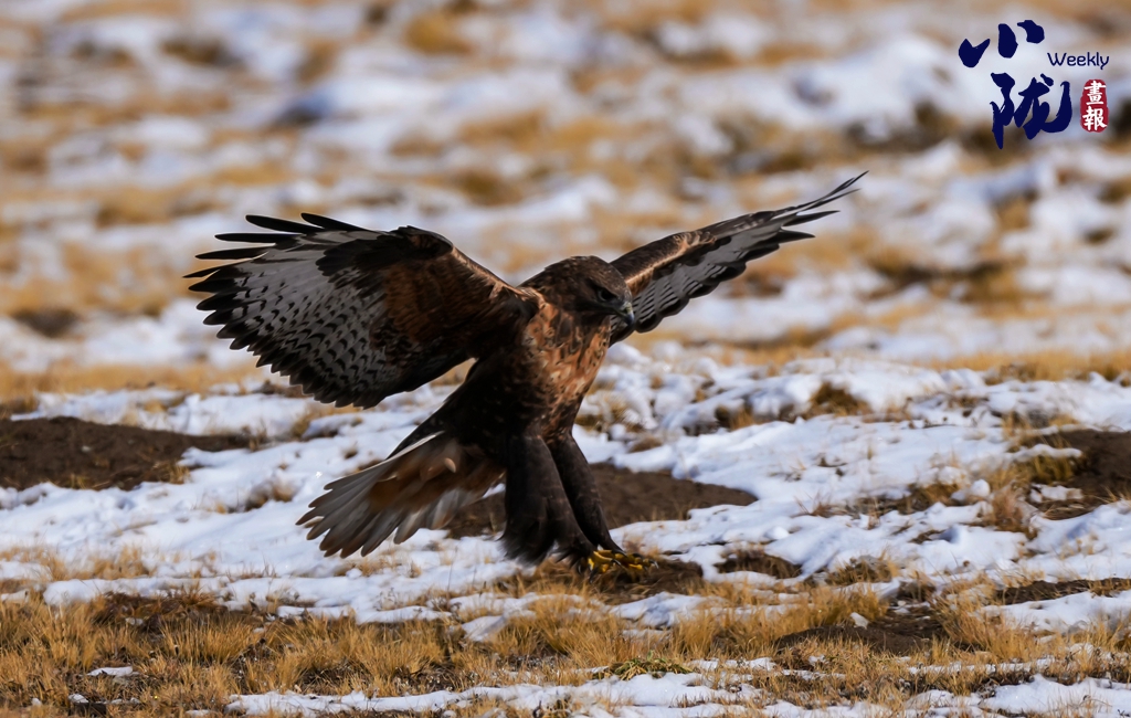草原雕是國家一級(jí)重點(diǎn)保護(hù)野生動(dòng)物,別名草原鷹。外貌兇悍、體形碩大的黃棕色雕,不同年齡階段及不同個(gè)體之間體色差異較大。喙灰色,腳黃色。飛行時(shí)兩翼平直,展開長度可達(dá)200cm,滑翔時(shí)兩翼略彎曲,尾有時(shí)呈形。由于張掖境內(nèi)生態(tài)環(huán)境持續(xù)改善,草原雕已逐漸成為肅南的越冬候鳥,每年11月底到次年4月初,在肅南濕地就能見到它的身影。