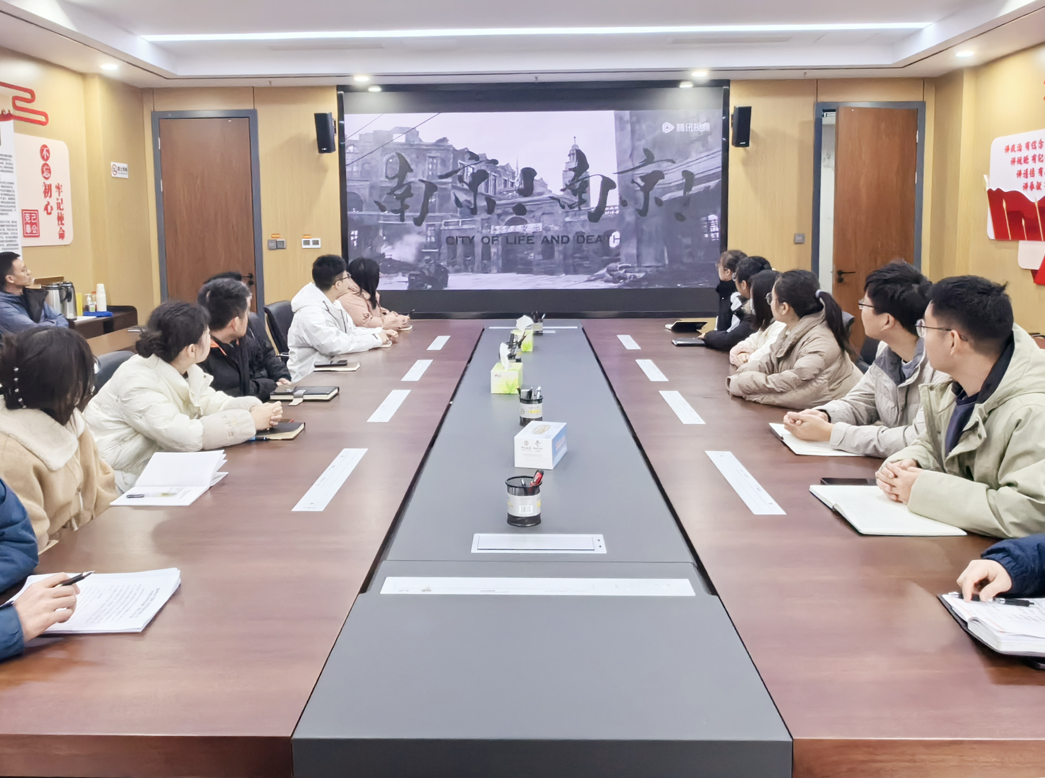 上午10時(shí)整,全體團(tuán)員默立一分鐘,向南京大屠殺死難者致哀。默哀畢,市擔(dān)保集團(tuán)團(tuán)支部聯(lián)合市礦投集團(tuán)團(tuán)支部組織全體團(tuán)員青年觀看歷史題材電影《南京!南京!》和《拉貝日記》,這兩部影片講述了86年前的今天,時(shí)為國(guó)民政府首都的南京城淪陷,但仍有許多官兵、愛(ài)國(guó)人士以及國(guó)際友人在民族存亡之際敢于留守,積極營(yíng)救中國(guó)難民,與日軍展開(kāi)激烈戰(zhàn)斗的故事。一幕幕歷史畫(huà)面,一樁樁血淚慘案,一個(gè)個(gè)死難同胞,無(wú)不觸動(dòng)著全體團(tuán)員青年的內(nèi)心,大家低頭沉思戰(zhàn)爭(zhēng)給中國(guó)人民帶來(lái)的苦痛經(jīng)歷,深切緬懷同胞先烈。