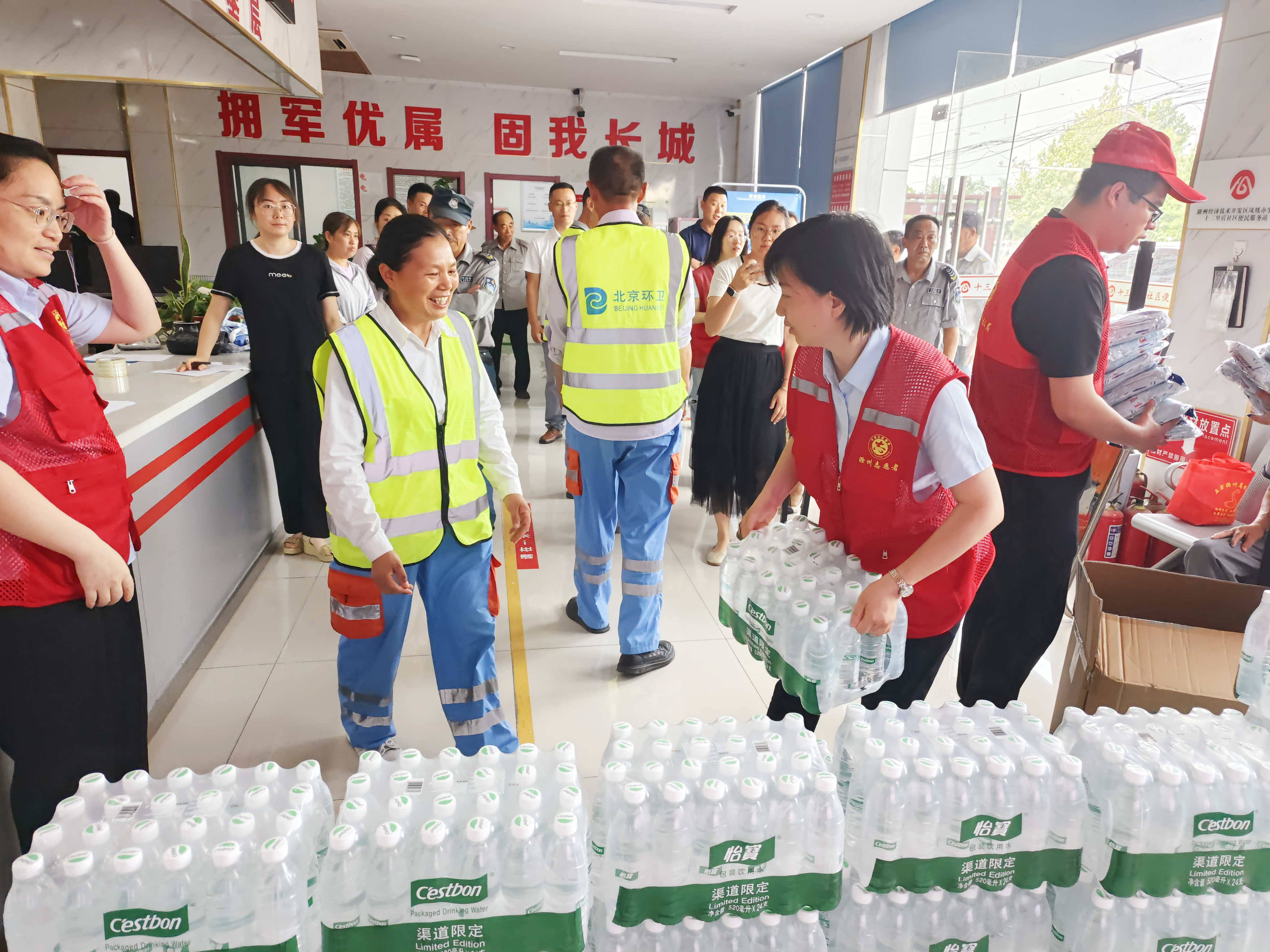 入夏以來(lái),持續(xù)高溫炙烤大地,給戶外作業(yè)的環(huán)衛(wèi)工人帶來(lái)了嚴(yán)峻“烤”驗(yàn)。為給炎炎夏日里高溫下作業(yè)的社區(qū)環(huán)衛(wèi)工人們送去一絲清涼和關(guān)愛(ài),7月16日,市擔(dān)保集團(tuán)三個(gè)黨支部聯(lián)合共建單位的黨組織,共同開(kāi)展“清涼送一線 關(guān)愛(ài)在身邊”黨員志愿服務(wù)活動(dòng),為共建的十三里店社區(qū)全體環(huán)衛(wèi)工人送去黨組織的關(guān)懷與問(wèn)候。