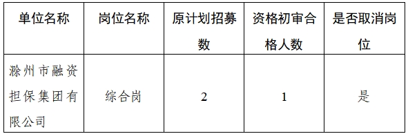 滁州市融資擔(dān)保集團(tuán)有限公司招募見(jiàn)習(xí)人員崗位取消公告