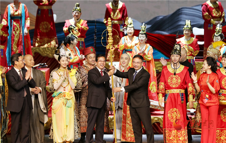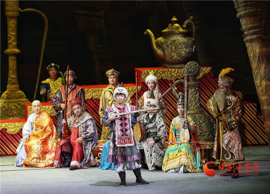 《玄奘西行》作為世界首部大型民族器樂劇,以絲綢之路文化交流使者玄奘的歷史故事為題材,集多民族樂器演奏和戲劇表演為一體,集中展示了敦煌莫高窟壁畫復原古樂器及古絲綢之路各民族傳統(tǒng)音樂的美妙旋律,體現(xiàn)了當代民族音樂的繼承與創(chuàng)新精神,是我國民族器樂舞臺藝術的高峰之作。演出結束后,中央民族樂團向甘肅省文藝院團捐贈舞美道具,并指導幫助甘肅省文藝院團實現(xiàn)《玄奘西行》的常態(tài)化駐場演出,為甘肅省再添一張靚麗的文藝名片。