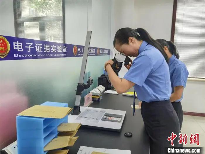 圖為電子證據(jù)實(shí)驗(yàn)室司法鑒定人對(duì)涉案手機(jī)進(jìn)行編號(hào)、拍照。 崔琳攝