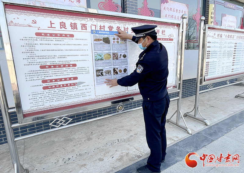 上良派出所社區(qū)民警在村務(wù)公開欄張貼禁毒宣傳海報