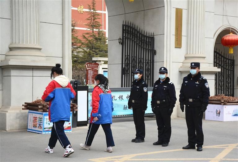 派出所民警在校園門口執(zhí)勤(蘭州日?qǐng)?bào)供圖)