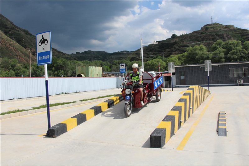 走進科目二考場,可以清晰的看到考生們信心滿滿地調整好摩托三輪車車速,慢慢地在紅白相間的標桿之間來回穿梭,一會兒,又筆直地通過單邊橋,大部分考生都能順利通過考試。