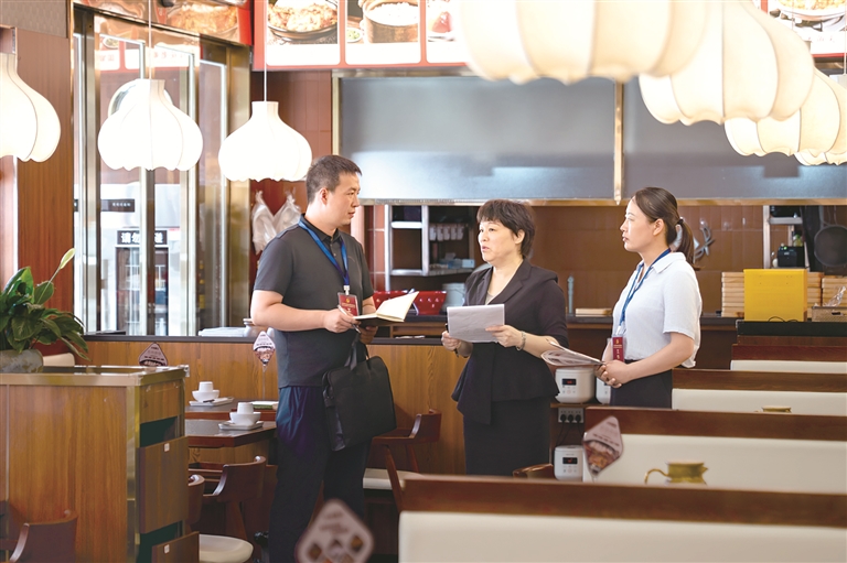 河南省漯河市郾城區(qū)紀(jì)委監(jiān)委圍繞公款吃喝、違規(guī)接受管理服務(wù)對(duì)象宴請(qǐng)等違反中央八項(xiàng)規(guī)定精神問(wèn)題開(kāi)展監(jiān)督檢查,一嚴(yán)到底狠剎歪風(fēng)邪氣。圖為近日,該區(qū)紀(jì)檢監(jiān)察干部在轄區(qū)某飯店了解相關(guān)情況。王曉 攝