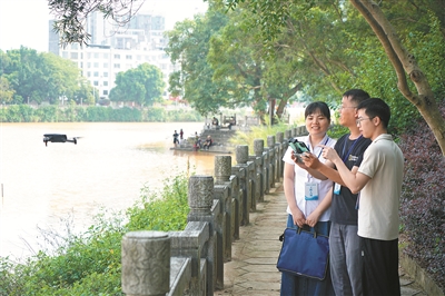 廣西壯族自治區(qū)北流市紀(jì)委監(jiān)委把生態(tài)環(huán)保責(zé)任落實(shí)情況作為政治監(jiān)督重點(diǎn),嚴(yán)肅查處濕地保護(hù)方面不擔(dān)當(dāng)、不作為、亂作為、假作為等問題,用鐵的紀(jì)律守護(hù)綠水青山。圖為近日,該市紀(jì)檢監(jiān)察干部與生態(tài)環(huán)境部門工作人員在圭江河濕地開展聯(lián)合監(jiān)督檢查,了解相關(guān)黨員干部履職情況。李家輝 攝