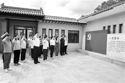 近日,山西省紀(jì)委監(jiān)委機(jī)關(guān)部分黨員在晉綏八分區(qū)(專署)舊址開展“傳承紅色基因,砥礪初心使命”主題黨日活動。圖為黨員重溫入黨誓詞。王鵬波 攝